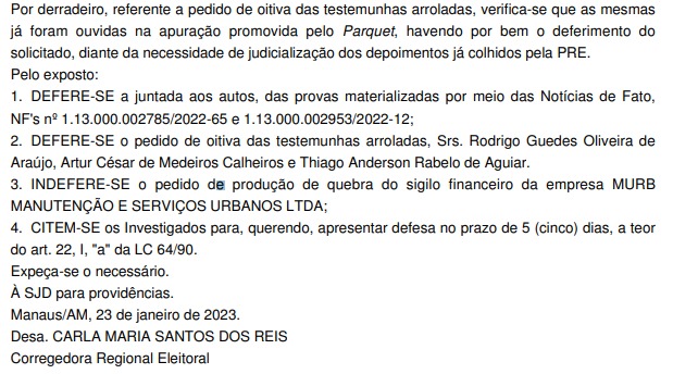 Após analisar a denúncia e a condução das investigações, a desembargadora Carla dos Santos Reis, indeferiu o pedido de quebra de sigilo fiscal da empresa Murb, mas deu o prazo de 5 dias para que os citados nas investigações apresentem defesa.