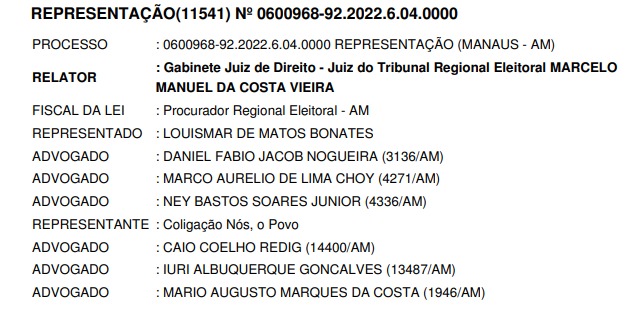 Bonates foi cinco vezes secretário no Amazonas e ingressou na Polícia Militar em 1979. Na decisão da corte eleitoral, o Coronel está sendo intimado por crime de propaganda antecipada, processo movido pela coligação “Nós, o povo” que abrigou a candidatura de Ricardo Nicolau e aliados nas eleições 2022.
