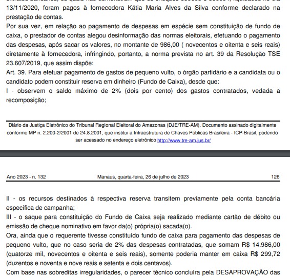 De acordo com documentos oficiais, a juíza Eleitoral Maria da Graça Giullieta de Carvalho Staling, julgou desaprovadas as contas de campanha de Dan, concorrente não eleito ao cargo de vereador em 2020, no município de Presidente Figueiredo. A juíza determinou que o deputado pague uma multa no valor de R$14.986,00 referente ao Fundo Especial de Financiamento de Campanha (FEFC).