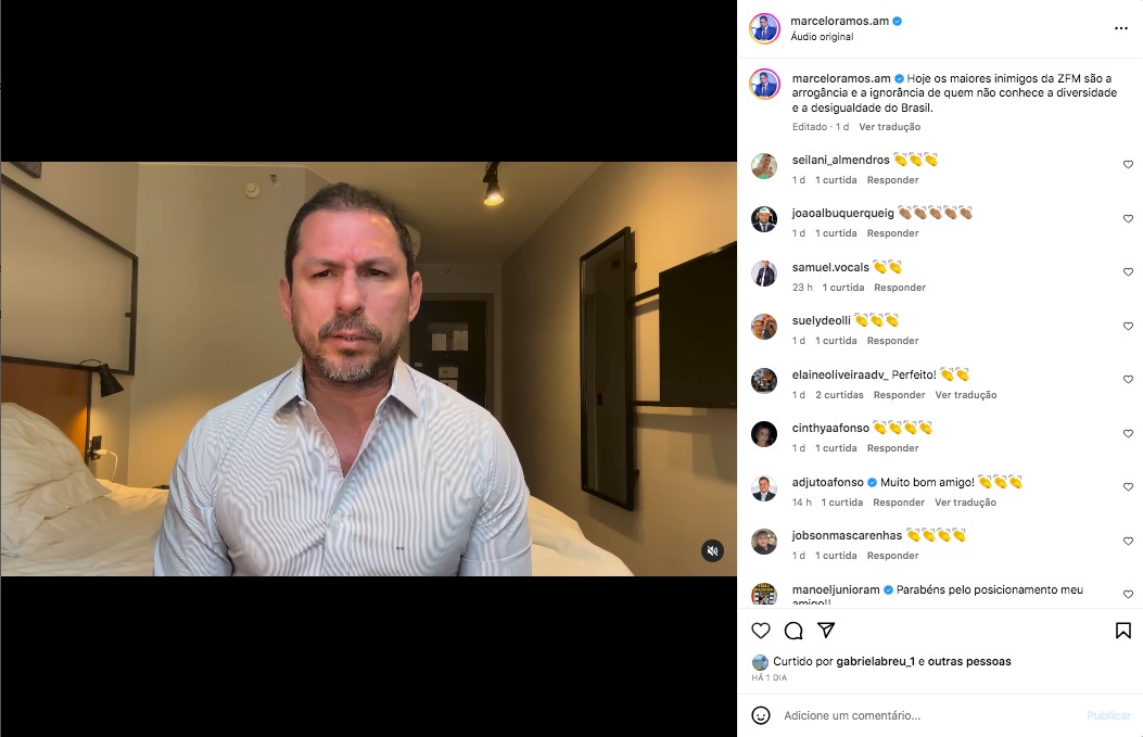 O ex-deputado federal Marcelo Ramos também se manifestou nas redes sociais rebatendo o economista. “O grande inimigo da ZFM hoje é a ignorância , é o preconceito, é o desconhecimento da realidade de um país de dimensões continentais muito diversas com desigualdades regionais muito profundas e que, portanto, não cabe na cabeça de quem pensa que o Brasil é São Paulo”, declarou Ramos.