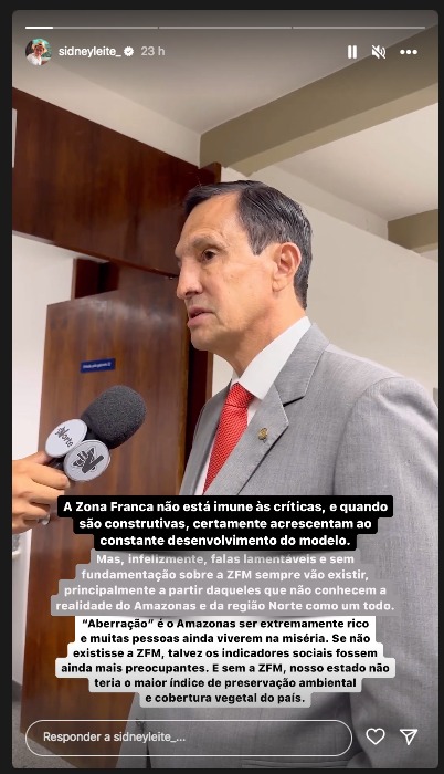 Sidney Leite também deputado federal, lastimou as falas do economista e afirmou que “infelizmente falas sem fundamento sobre a ZFM de quem não conhece a realidade do Amazonas e a região norte como um todo sempre vão existe”.