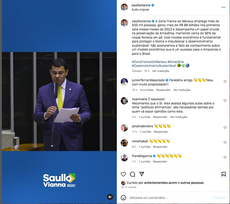“A Zona Franca de Manaus emprega mais de 500 mil pessoas, gerou mais de R$ 98 bilhões nos primeiros sete meses meses de 2023 e desempenha um papel crucial na preservação da Amazônia, mantendo cerca de 95% da nossa floresta em pé. Este modelo econômico é fundamental para proteger o bioma e impulsionar o desenvolvimento sustentável. Não aceitaremos a falta de conhecimento sobre um modelo econômico que é um sucesso para o Amazonas e para o Brasil”, afirma.
