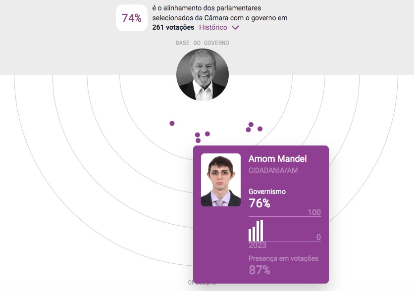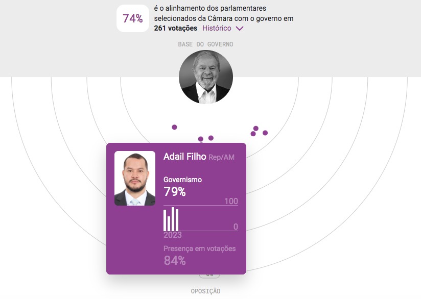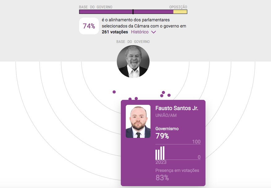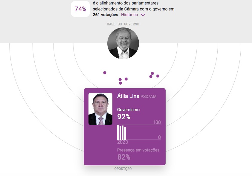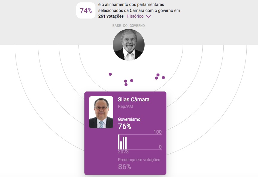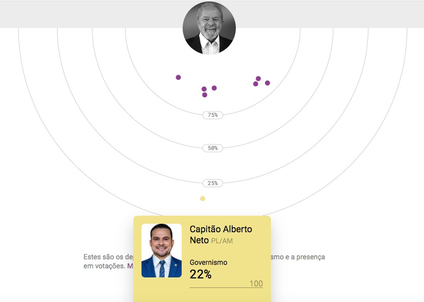 Os dados apontam que a maioria dos deputados federais do Amazonas, mesmo bolsonaristas, está “alinhada” com as propostas do governo atual. A plataforma organiza a margem de governismo de cada parlamentar na Câmara dos Deputados, de acordo com os votos em propostas do governo.
