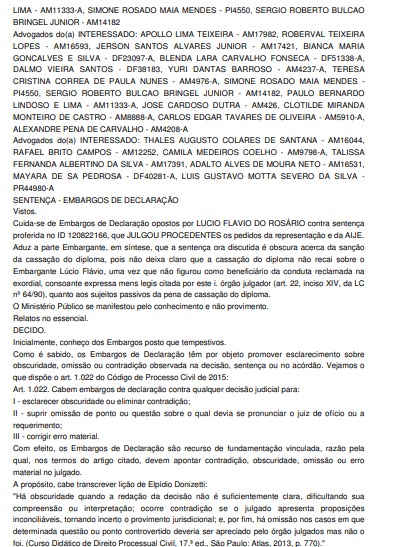 Em 21 de outubro de 2023, a juíza pediu a cassação de diploma de Lúcio Flávio e a inelegibilidade do prefeito por oito anos por captação ilícita de sufrágio e abuso do poder econômico.