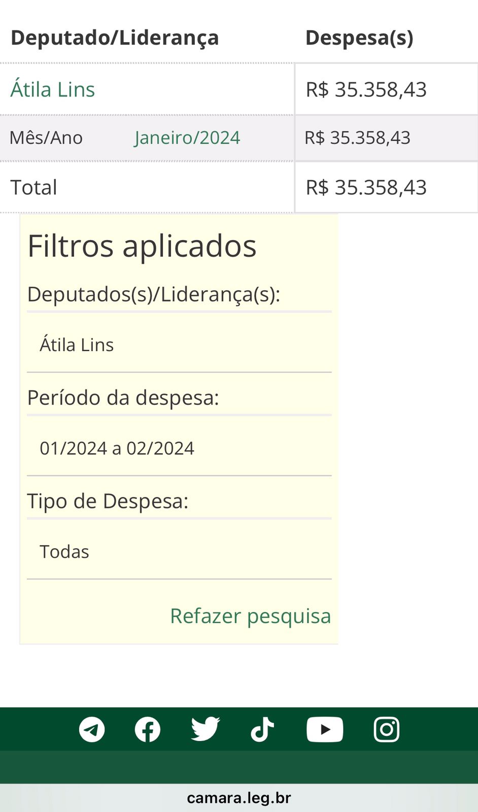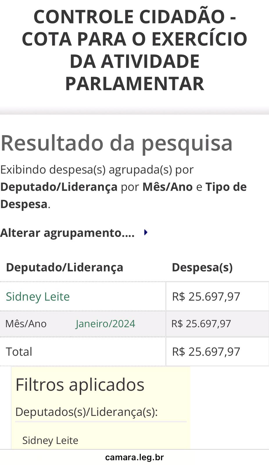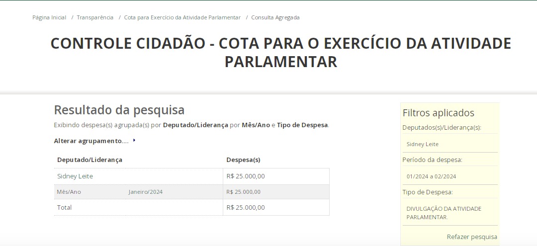 Sidney Leite (PSD) é o terceiro com mais gastos em janeiro, chegando ao valor de R$ 25.697,97. O parlamentar exerce o segundo mandato em Brasília. Leite gastou com divulgação R$ 25.000,00. O valor foi pago à ‘Macedo e Carlomagno Comunicações e Marketing Ltda’, em janeiro deste ano.