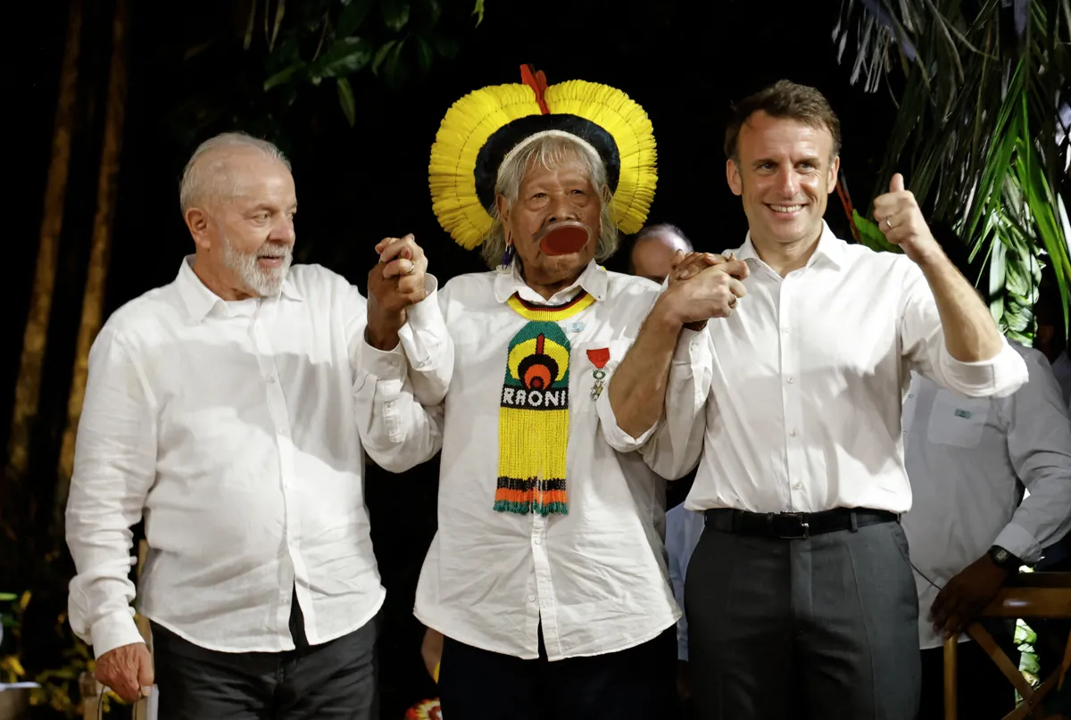 O presidente Luiz Inácio Lula da Silva e o presidente da França, Emmanuel Macron, apresentaram nesta terça-feira (26/3) em Belém um programa de investimentos de € 1 bilhão (aproximadamente R$ 5,4 bilhões) em projetos de bioeconomia para a Amazônia Legal brasileira e a região amazônica da Guiana Francesa.