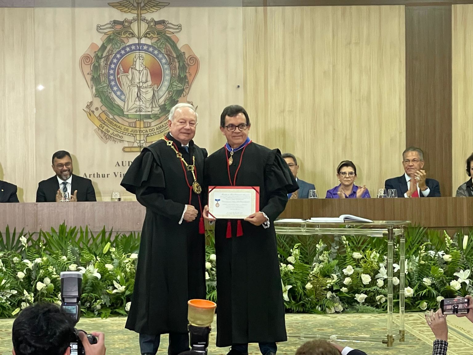 O novo presidente do TRE-AM, o desembargador João Simões, enfatizou que a principal missão durante o mandato será a condução das eleições de 2024, além de elevar o Tribunal a um nível maior. “Nós temos a nossa principal missão do Tribunal Regional Eleitoral, qual é essa missão? É realizar as eleições. E vamos ter as eleições municipais, muitos candidatos a vereadores, em todo o estado do Amazonas. São mais de dois milhões e meio de eleitores e os prefeitos também, capital e interior. O primeiro, o principal, que é realizar as eleições em modo bem feito, em modo mais rápido possível, mais transparente. E o segundo, a melhoria dos processos do tribunal para alcançarmos cada vez mais um patamar maior. Então esses são os objetivos e aqui, com a ajuda do desembargador Airton, na Corregedoria, na vice-presidência, eu tenho certeza que a nossa gestão será um sucesso”, disse Simões.