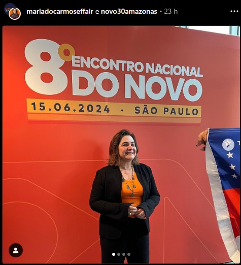 No último domingo, a presidente do Novo no Amazonas e pré-candidata a prefeita nessas eleições, Maria do Carmo Seffair usou suas redes sociais para divulgar sua participação no encontro nacional do Novo em São Paulo. Com a bandeira no Amazonas, Seffair compartilhou o recorde histórico de filiados na legenda em Manaus.