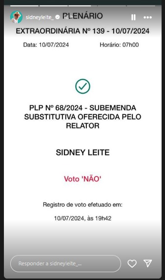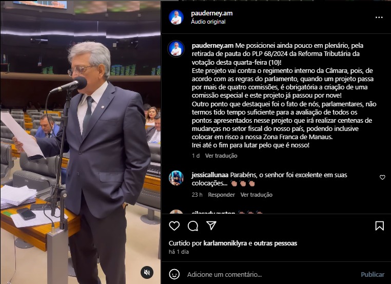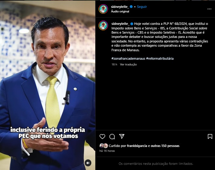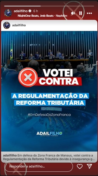 Nas redes sociais sociais, Alberto Neto chamou a votação de “estupro tributário”. “Resumo da tragédia de hoje: Zona Franca de Manaus, UEA, impostos e tudo que foi votado na REFORMA TRIBUTÁRIA do GOVERNO LULA!”, escreve nas redes.