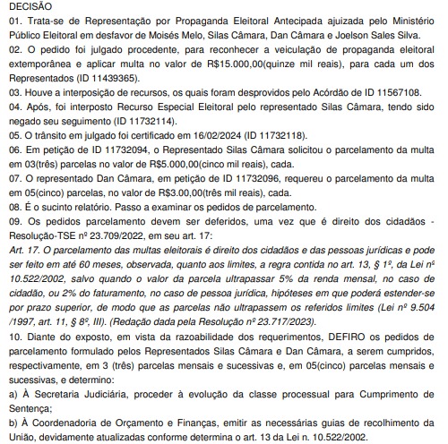Os irmãos Silas Câmara e Dan Câmara recorreram nas condenações e solicitaram o parcelamento da multa. Silas pediu o parcelamento da multa em três parcelas no valor de R$ 5 mil. Já Dan Câmara pediu o parcelamento em cinco vezes de R$ 3 mil, ambos conseguiram na justiça parcelar a multa do TRE.