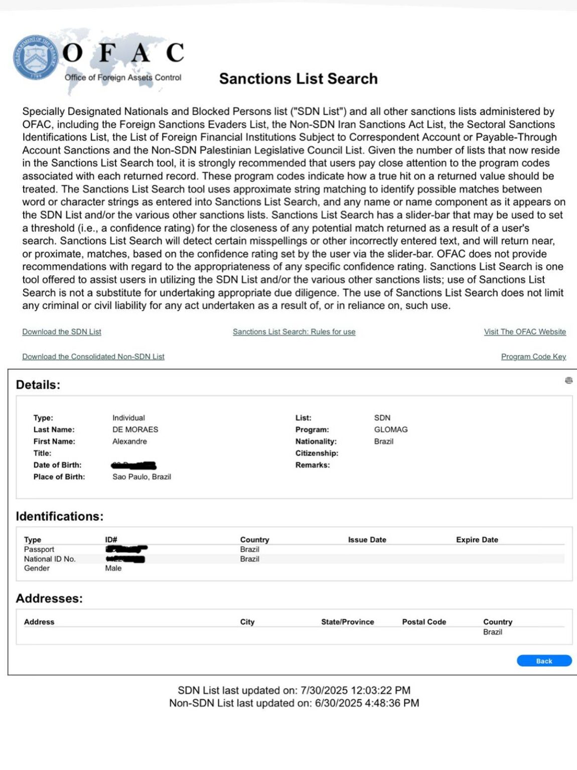 O nome do ministro agora consta na lista do Escritório de Controle de Ativos Estrangeiros (OFAC), responsável por aplicar sanções econômicas nos Estados Unidos.