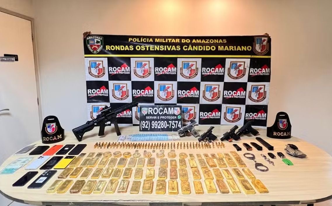 Uma ação da Rondas Ostensivas Cândido Mariano (Rocam) terminou com a apreensão de mais de 72 quilos de ouro, armas e a prisão de três policiais, na noite desta quarta-feira (29), em Manaus. O caso aconteceu em uma casa na rua Michel Fokine, no bairro Parque 10, zona Centro-Sul da capital.
