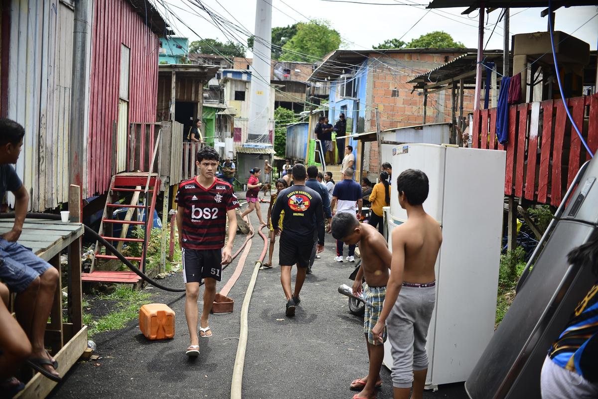 Um incêndio de grandes proporções atingiu uma área de casas de madeira no bairro São Jorge, zona Oeste de Manaus, na manhã desta sexta-feira (31). O fogo começou por volta das 8h30 e destruiu completamente uma residência de dois andares, deixando pelo menos dez famílias com prejuízos materiais.