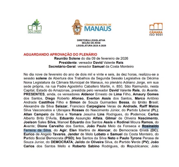 O vereador Rosinaldo Bual (AGIR) voltou a constar como presente nas sessões da Câmara Municipal de Manaus (CMM), após período de afastamento determinado pela Justiça. O parlamentar estava fora das atividades legislativas desde outubro de 2025, quando foi preso e suspenso do cargo por 120 dias.