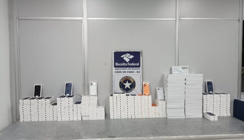 Receita Federal apreende 2 mil iPhones e remédio ilegal em Manaus