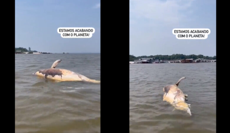 Mortes na seca: Imagens registram corpo de boto no Rio Amazonas