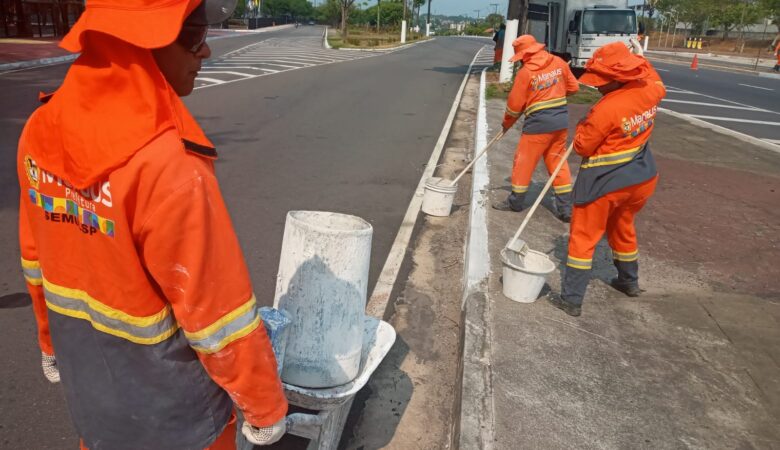 Prefeitura de Manaus realiza pintura de meio-fio no Distrito Industrial