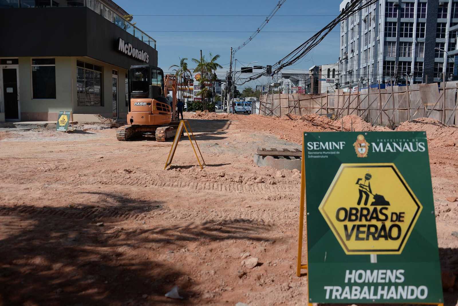 Carro invade estrutura de obra na avenida Autaz Mirim, em Manaus