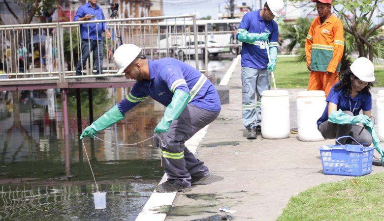 Prefeitura de Manaus sanitiza águas paradas na praça do Relógio